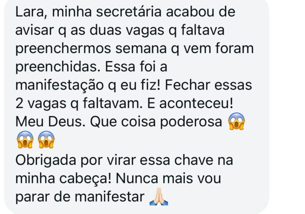 Hoje, através da minha mentoria e dos meus conteúdos, ensino mulheres a curarem padrões, ressignificarem o amor, e se tornarem imãs de oportunidades, abundância e relacionamentos saudáveis unindo ciência, espiritualidade e a aplicação da Lei da Atração.